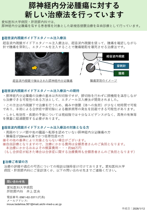 愛知医科大学病院・肝胆膵内科にご受診頂くか,以下の問い合わせ先までご連絡ください。