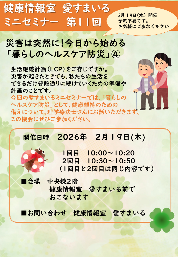 健康情報室 愛すまいる ミニセミナー開催のお知らせ