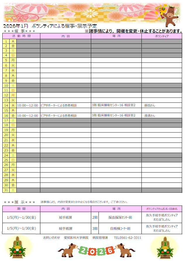 ボランティアによる催事・展示のお知らせ(令和8年1月)