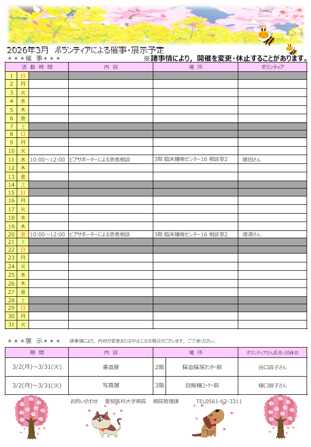 ボランティアによる催事・展示のお知らせ(令和8年3月)