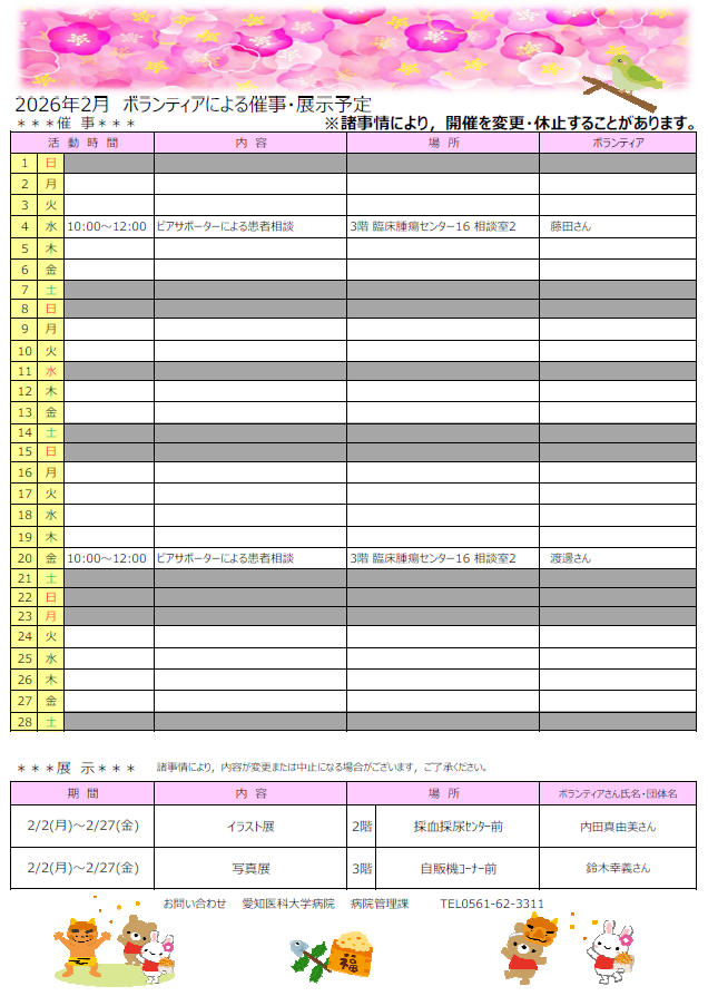 ボランティアによる催事・展示のお知らせ(令和8年2月)