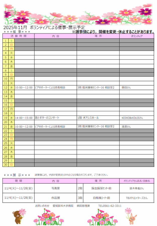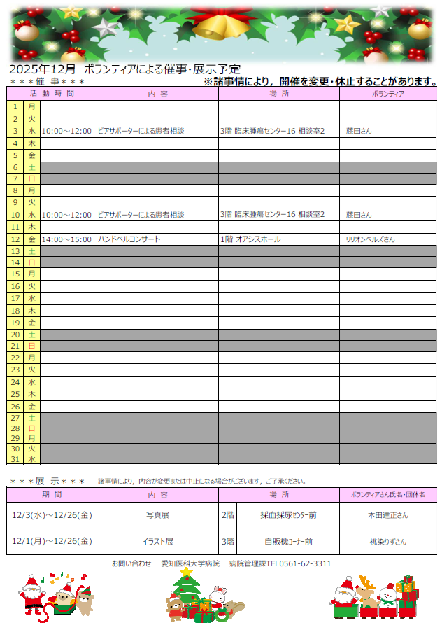 ≪ボランティアによる展示・催事予定は,「お知らせ」にも掲載しています。≫
