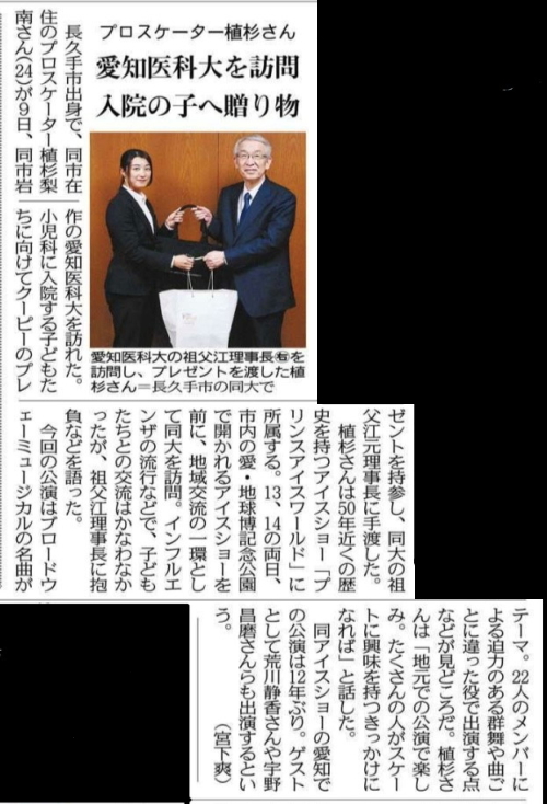| タイトル | プロスケーター植杉さん 愛知医科大を訪問 入院の子へ贈り物 |