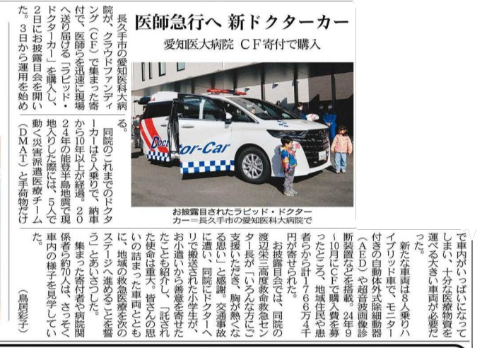 | タイトル | 医師急行へ 新ドクターカー 愛知医大病院CF寄付で購入 |