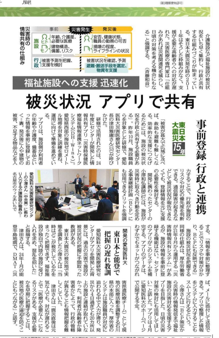 中日新聞に災害医療研究センターの記事が掲載