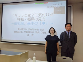 令和7年9月20日(土)に,愛知医科大学看護学部教授(特任),愛知医科大学病院NP部NP部⻑である診療看護師(NP)の森一直氏と,同大学病院急性・重症患者看護専門看護師上野沙織 氏による臨床看護セミナー“看護師の観察力を磨く!異常の兆候を見抜くポイント”をオンライン形式で開催しました。